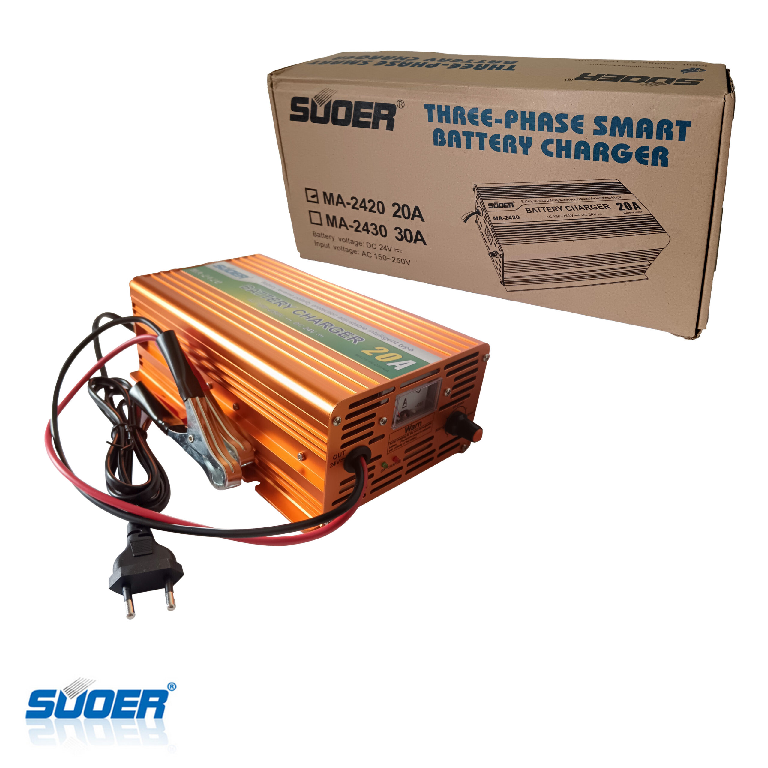 The MA-2420 is an intelligent, fast charger featuring a durable metal body with excellent heat dissipation for efficient cooling. Designed for safety, it offers stable output and operates as a three-phase charger, providing both constant current and constant voltage for reliable, optimal charging performance.