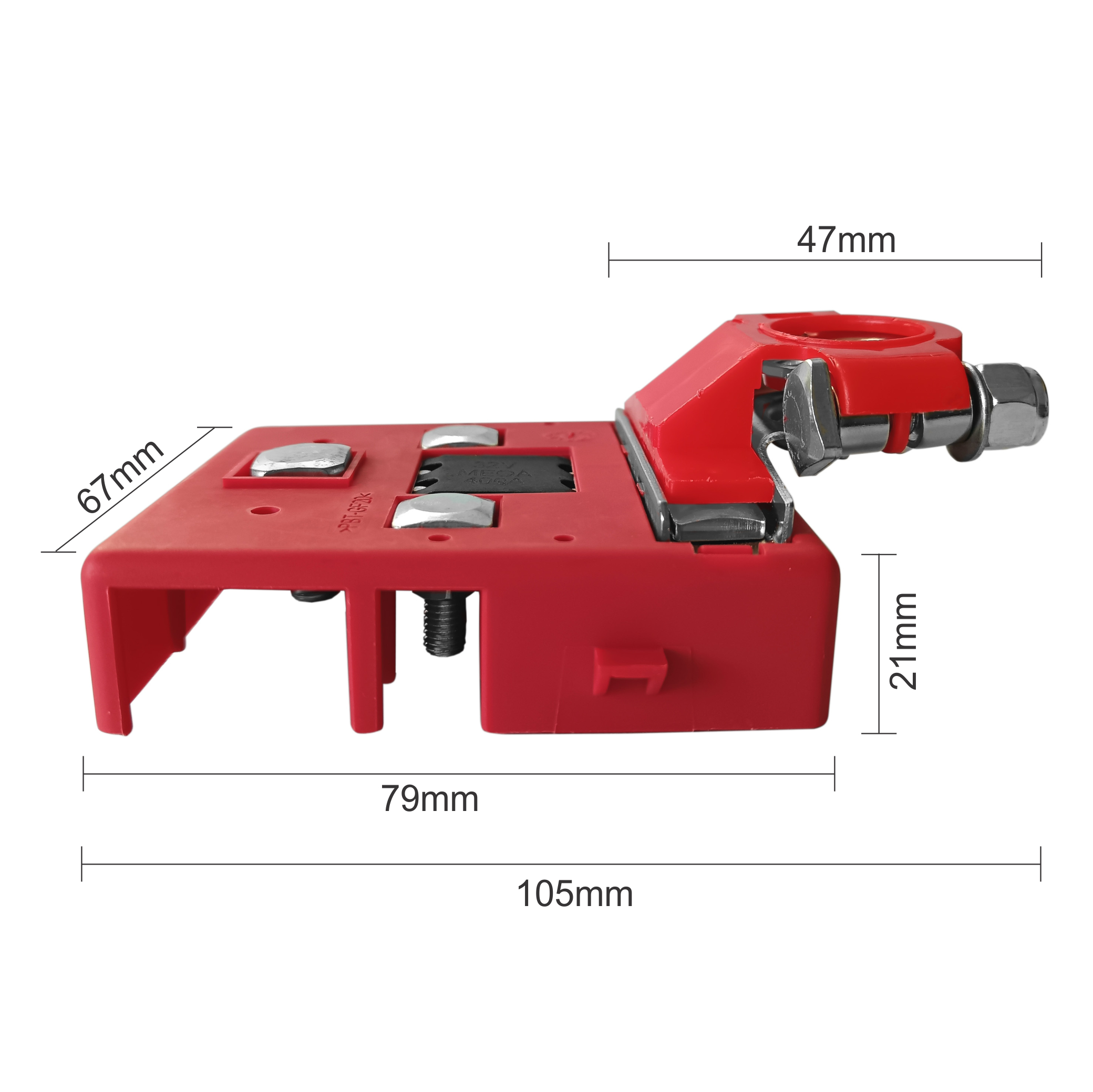 Converts your positive battery post into three fused outlets for safe power distribution. Ideal for 4WDs and caravans with multiple accessories or dual battery systems. This connector with an integrated fuse box ensures current flows only through designated circuits, helping to reduce stray currents and minor electrical leakage. Proper installation and wiring quality are essential for optimal performance.