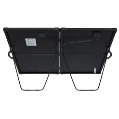 Our hi-power 2*100w portable solar panel features a foldable design. It consists of 2 connected 100w panels. Each solar panel has an adjustable bracket underneath. When folded, the solar panel is approximately 987*547*50mm and can fit in the trunk of a small car.
